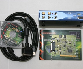Een Hercules Gametheater XP geluidskaart met externe breakoutbox. Zeer veel aansluitmogelijkheden, zie de onderstaande link voor meer informatie.