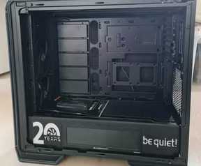 Achter het paneel met scherm kan je een ledstrip plaatsen waardoor de 20 Years en BeQuiet logo kunnen oplichten.