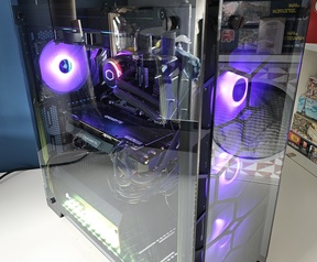 Behuizing is voorzien van verschillende RGB-verlichting (waaronder water-cooling) en glazen behuizingspaneel.