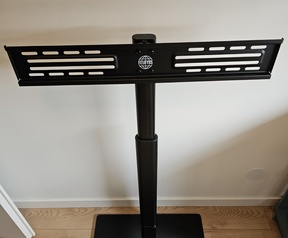 Tv-standaard verder in prima staat met wat kleine plekjes. De clipjes om de beugels tegen horizontaal schuiven te borgen zijn zoek. Maar het gewicht van een tv is vrijwel voldoende om zodat deze op z'n plek blijft.