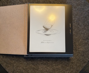 Boox Go 7 E-reader met een pen en magnetische hoes.
