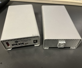 De aluminium behuizingen hebben duidelijke gebruikssporen. De boel is wel compleet qua schroeven/kabels intern, voor extern heb ik alleen USB-kabels en 12V adapters ter beschikking momenteel.