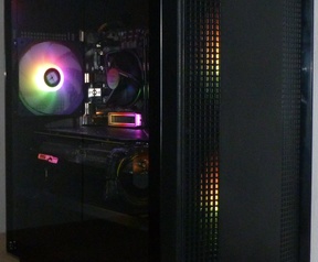Behuizing: DeepCool CC360 ARGB midi tower (nieuw) met 3 x aRGB Thermalright ventilators (nieuw), 1 x aRGB LEDstrip en M2 aRGB koeler (bediening door RGB afstandsbediening)