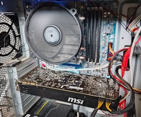 en mega grote cpu fan zit er bij. wordt wel los gehaald bij verzenden en goed verpakt :-)