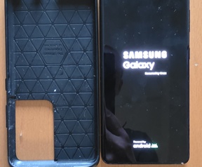 Standaard in een bescherm rubber hoesje. Ook nog flip over hoesje erbij met s pen