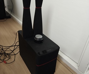 Wegens overcompleet mag dit mooie speaker setje nu weg. Ik hoop er iemand anders blij mee te maken. De set ziet er nog erg netjes uit. Daarnaast staan de speaker erg mooi op het bureau, een echte eye catcher! Geluid daarnaast ook dit in order.