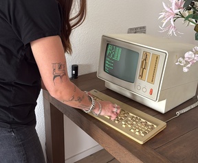 Draait op MS-Dos en functioneert volledig. Met bij behorend toetsenbord. Af en toe iets harder de toetsen indrukken voor ze registreren.