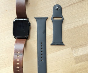 Apple sport bandje siliconen zwart zit erbij. M/L