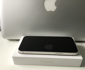 Een zilverkleurige iPhone 12, 128GB in perfecte staat aangeboden.(heeft geen enkele kras en/of beschadiging)