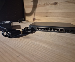 netwerkswitch met 8 POE poorten en 2 SFP poorten.