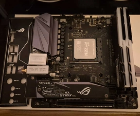 Ryzen 5 4650G PRO, 16GB DDR4 G-Skill trident z ram op een ASUS ROG B450-i strix bord.