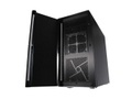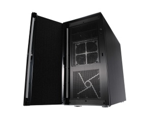Eigenlijk een prachtige strakke behuizing van dik geborsteld aluminium ontworpen op stilte. Daarom zijn de wanden ook voorzien van geluiddempend foam. Nadeel is dat de koeling niet optimaal is, echter is er wel een in- en outtake.