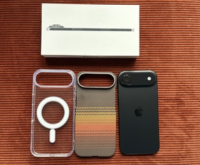 Inclusief: Doosje, kabel, clear case met MagSafe en een replica Pitaka MagSafe hoesje (Temu, scheelt €65 (-: ).