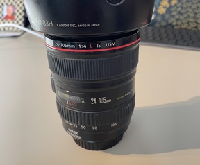 - een EF 24-105mm f/4 L IS USM inclusief lensdoppen en zonnekap.
