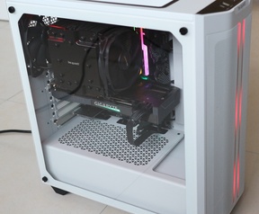 Extreem grote luchtkoeler voor de CPU zorgt ervoor dat de PC nagenoeg stil is bij normaal gebruik (internetten etc)