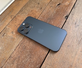 De accu is voor een twee jaar oude telefoon wel in redelijke staat met 89% van de originele capaciteti. Er zitten wat lichte puntjes in de titanium rand. Geen echte deuken of krassen, maar plekjes waar de kleur weg is. Er heeft altijd een hoesje en een screenprotector op gezeten en daar krijg je er ook een paar van bij. Een hoesje zit er ook bij. Een blauwe siliconen van Apple. Ik heb ook nog een flink gebruikte Finewoven van Apple als reserve. Stofjes op de foto haal ik er nog even af met een spuitbusje.