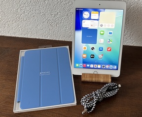 De iPads komt met een 1x niet originele laadkabel, en de witte iPad Mini met een splinternieuwe Apple SmartCover in fel blauw. De cover is echt nieuw, in ongeopende verpakking.