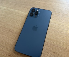 Wordt geleverd met: origineel blauw lederen Apple hoesje met MagSafe, laadblokje en lightning kabel.