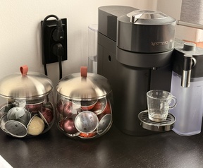Zo goed als nieuwe Nespresso Vertuo Lattissima. Let op! Gaat om de lattissima variant met melkschuimer, model staat niet in de pricewatch. Is onlangs voor onderhoud geweest bij Nespresso, heeft daar een volledig nieuwe ring + cupmachanisme gehad onder garantie. Apparaat is dus zo goed als nieuw! Zitten ook redelijk wat cups bij die je er bij krijgt!