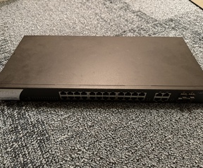 24x Ethernet 1Gbps, 4x combo sfp. 1U . Geen rackoren. Voedingskabel zit erbij.