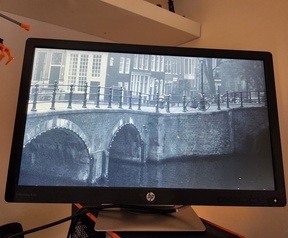 Komt met stroomkabel + DP kabel. Uitgangen VGA, HDMI en DP.