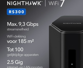 Te koop: Netgear RS300, een krachtige WiFi 7 (802.11be) router uit de Nighthawk-serie. Ideaal voor wie maximale snelheid, lage latency en toekomstbestendige prestaties zoekt.