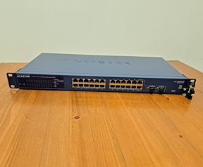 Rack mount-oortjes zitten er aan vast. Kan worden geleverd met een stroomkabel. Of niet. Ik heb zo veel van die dingen. Kan me voorstellen dat als je deze switch wil overnemen, je zelf ook een berg stroomkabels hebt.