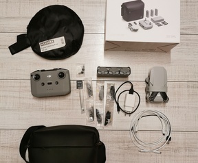 Doos, tasje, propellors, extra joysticks, oplader, usb c kabels, landing pad, drone, 2 werkende en 1 dode accu, laadstation, een goed verhaal en eventueel op verzoek de originele factuur en sd kaartje met sd-adapter.