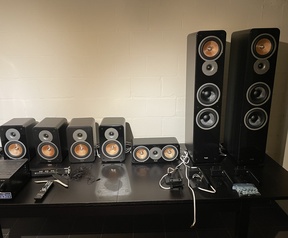 Gaat om deze set + nog 2 extra MK20 speakers voor 7.1 geluid, aangestuurd door de Denon X2400H.