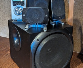 De speakers zijn in orde maar het scherm van de bediening heeft een defecte rij pixels wat een veel voorkomend probleem is bij dit model, ook heeft de afstandsbediening wat oxidatie op de veren.