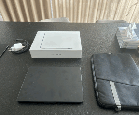 Incl doos, beschermhoes, laptop sleeve en lader.