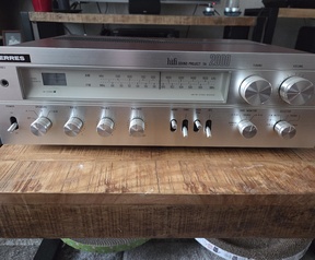 De Erres HiFi Sound Project TA-2000 is een robuuste vintage stereo receiver uit de jaren ’70, geproduceerd door Erres (Philips). Met zijn krachtige 2 × 35 Watt versterking, warme analoge klank en klassieke zilvermetalen front met grote draaiknoppen is dit een echte blikvanger in elke vintage audio-opstelling. Het apparaat beschikt over meerdere ingangen, waaronder phono voor platenspelers, AUX en twee tape-ingangen. De TA-2000 kan twee speakerparen (A en