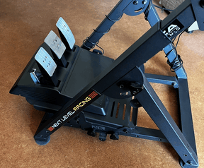 Alle onderdelen, zoals voor bevestiging schakelpook of handrem, zijn aanwezig. Deze stand is op allerlei manieren toepasbaar en uitbreidbaar. Zie foto 4. Op foto 1 is hij op de laagste en kortste stand ingesteld. Zie uitgebreide voorbeelden op https://nextlevelracing.com/products/racing-wheel-stand-2-0/?lang=nl