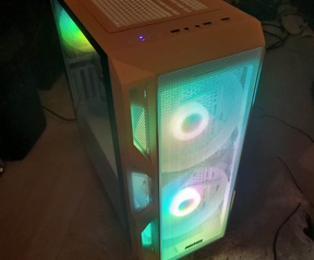 Er zit in, een snelle Intel Core i7-4770 processor, 16 GB DDR3 geheugen, nieuwe 512GB Silicon Power SSD, 1 TB Toshiba harde schijf en een 4GB Gigabyte Aorus Radeon RX 580 videokaart met Scythe fans er op.