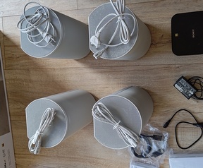 Z.g.a.n. incl. alle toebehoren en 2 verlengsnoeren van 3m voor de speakers (ik heb ze niet meer nodig, dus die doe ik wr gratis bij) en kan verzonden worden in originele verpakking (zie foto's)