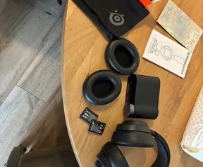 Originele doos aanwezig, originele USB C kabel, originele Jack plug, originele sleeve, boekjes, 2 originele accus, de ontvanger/dac/eq, originele cushions en uiteraard de headset zelf.