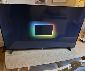 Uiteraard met stroomkabel en afstandsbediening, de pootjes en een set 3d geprinte pootjes (net wat lager).