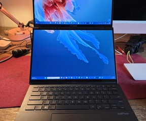 Twee schermen op een laptop, de droom van iedereen die wil multitasken. Laptop is in uitstekende staat met wat hele lichte gebruikssporen aan de onderkant van de behuizing. De schermen zijn in perfecte staat. Inclusief laptopsleeve, Asus Pen en oplader. Geen doos en geen factuur, vandaar ook scherpe prijs.