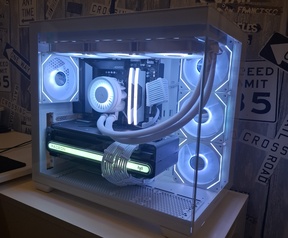 Deze build is ideaal voor zowel fanatieke gamers als content creators of iedereen die gewoon een krachtige en stille pc wil. Alle RGB-verlichting is volledig aanpasbaar via software, zodat je de stijl van de pc perfect kunt afstemmen op je setup.
