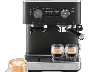 KitchenAid luxe halfautomatische espressomachine met ingebouwde koffiemolen in de stijlvolle kleur Vulkaanzwart.