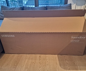 Ik heb de bar en subwoofer 1x aan gehad maar hij is helaas te groot voor in de kamer.
