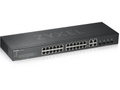28 poorten + 4 SFP sloten. Switch is via de cloud te beheren. Erg compact.