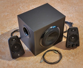 Zeer goede staat, heeft op de subwoofer wat lichte gebruikssporen. Werking is als nieuw en geluid is zuiver. Incl stereo-snoertje met groene stekkers. Schoongemaakt en stofvrij.