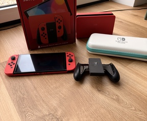 Hierbij bied ik mijn overcomplete Nintendo Switch OLED Mario Edition met alle originele accessoires (dock, lader, etc.), met doos, beschermhoes en officiële Nintendo microSD opslag (128GB) te koop aan.