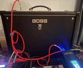 de versterker wordt met netsnoer (uiteraard) meegeleverd, maar je kan bij bezichtigen ook even zelf spelen (iK heb er enkele pedalen op aangesloten).