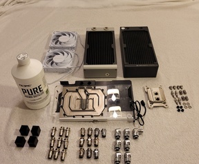 De ventilators zijn prettig en onhoorbaar bij de goede instellingen, de 2 radiators hebben 60mm dikke koelcapaciteit, het Gpu koelblok heeft 300 euro nieuwwaarde, dit zijn enkele voorbeelden van wat te verwachten, ik kan bij intresse meer details vertellen.