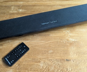 Met afstandbediening en stroomkabels voor de bar en subwoofer.