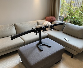 De rest wijst zichzelf: zéér degelijke monitorarm die met gemak 3x 27" aankan. Ik had zelf de buitentste schermen verticaal hangen, maar horizontaal kan uiteraard ook. Vanwege het formaat is ophalen de enige optie, hij past zonder al te veel moeite in vrijwel alle personenauto's.