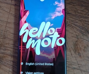 Een telefoon die keihard is gevallen. Hoekje kapot en een scherm dat nog maar half werkt.