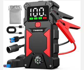 Car Jump Starter 5000A Peak 24800mAh 12V superveilige startmotor (tot alle soorten gas, 8,0 L dieselmotor), USB Charge,met LED-verlichting, HD-groot scherm 【GROTE CAPACITEIT EN DC-UITGANG】FNNEMGE auto-jumpstarter met een capaciteit van 24800 mAh, een piekstroom van 2500 A, kan gemakkelijk 12V-voertuigen starten (tot alle benzine, 8,0 l dieselmotor). Geschikt voor auto's, vrachtwagens, motorfietsen, waterscooters, grasmaaiers, sneeuwscooters, enz. Met een sigarettenaanstekeradapter met EC-5-uitgang, eenvoudig te gebruiken voor het aandrijven van autostofzuiger, luchtcompressor, autokoelkast en andere 12V-auto-apparatuur. 【DRAADLOOS POWERPACK VAN 10 W EN SNEL OPLADEN VIA USB3.0】De draadloze oplaadfunctie van 10 W en een grote batterijcapaciteit van 24800 mAh kunnen voldoende stroom leveren om uw smartphones snel op te laden. De Quick Charge 3.0-poort laadt compatibele apparaten tot sneller op dan conventioneel opladen. 【VEILIGHEIDSBESCHERMING EN BETROUWBAARHEID】De startaccu van de auto is voorzien van een intelligent beveiligingssysteem dat beschermt tegen kortsluiting zonder dat u zich zorgen hoeft te maken over onjuiste aansluitingen of vonken. Makkelijk te gebruiken, veilig voor iedereen om te gebruiken. 【LED-ZAKLAMP EN KOMPAS VOOR NOODGEVALLEN】De jumpstarter is uitgerust met 4 LED-lichtmodi: zaklamp, strobe, SOS, roodblauwe waarschuwing. Deze multifunctionele zaklamp is ideaal voor kamperen, buiten, noodgevallen, reizen, enz. Het kompas kan je helpen de weg naar huis te vinden als je verdwaalt in het wild.